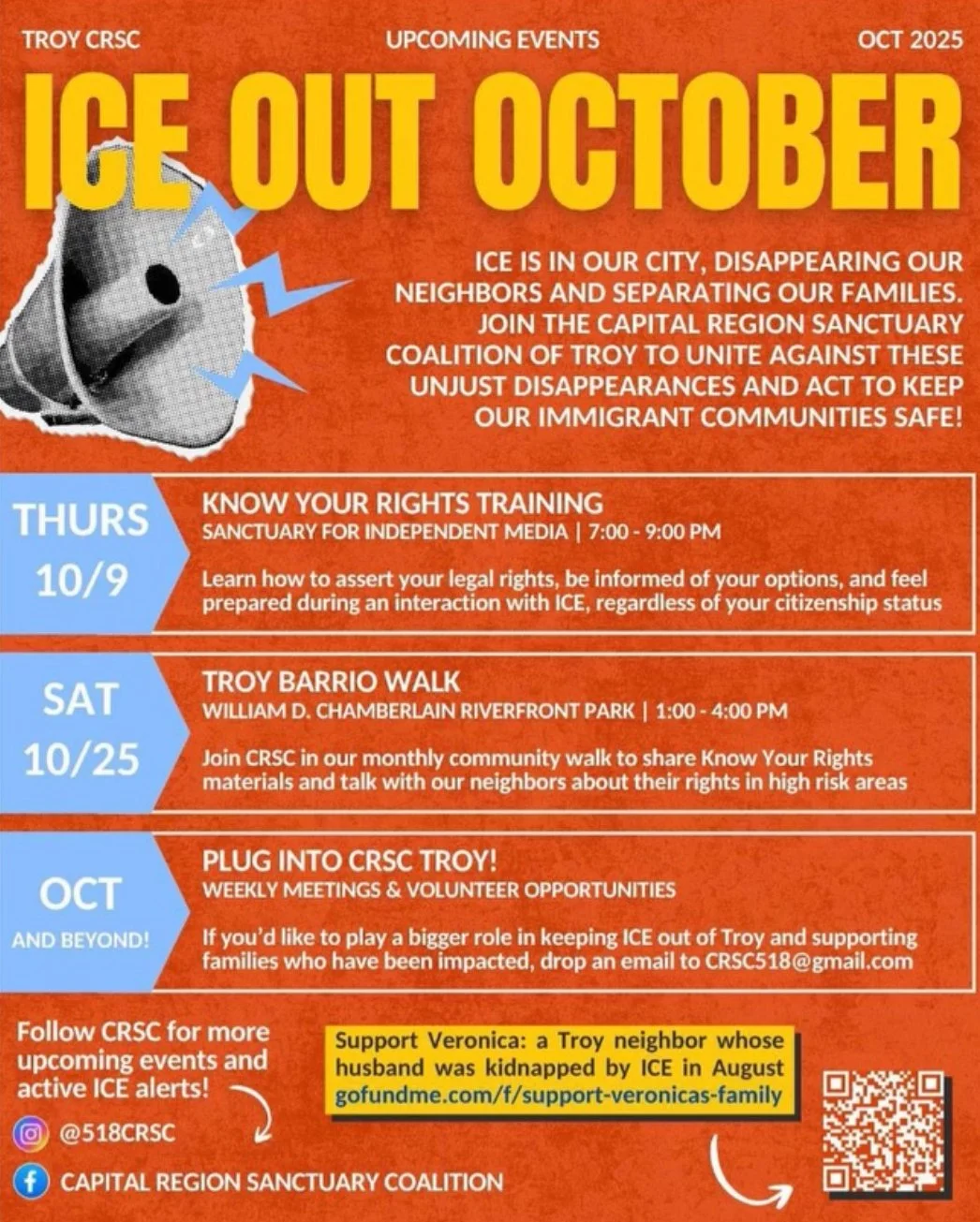 Join the Capital Region Sanctuary Coalition and learn how to assert your legal rights, be informed of your options, and feel prepared during an interaction with ICE, regardless of your citizenship status.