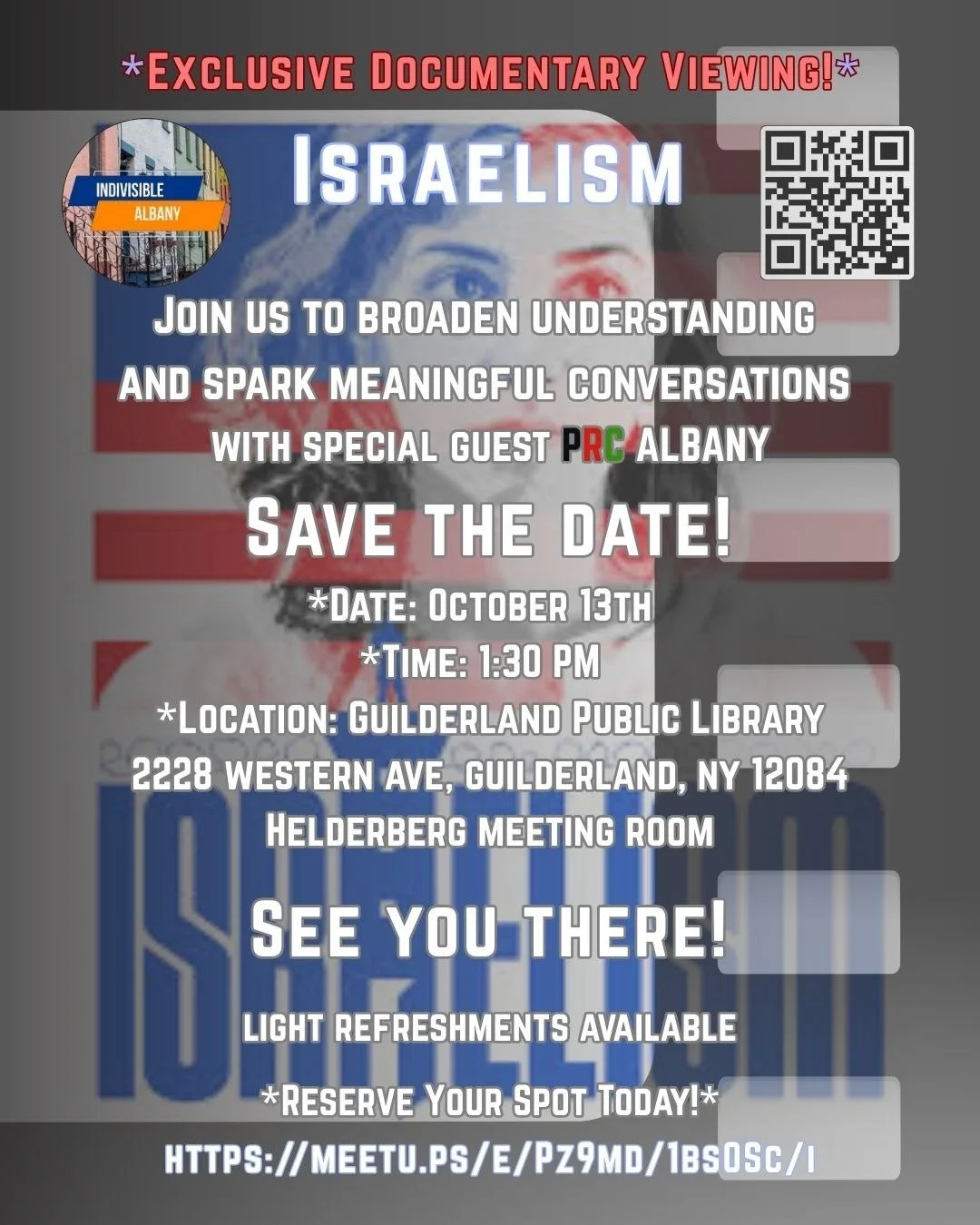 Join Indivisible Albany and Palestinian Rights Committee for a free screening of the acclaimed documentary, Israelism, followed by an open discussion about its timely themes.