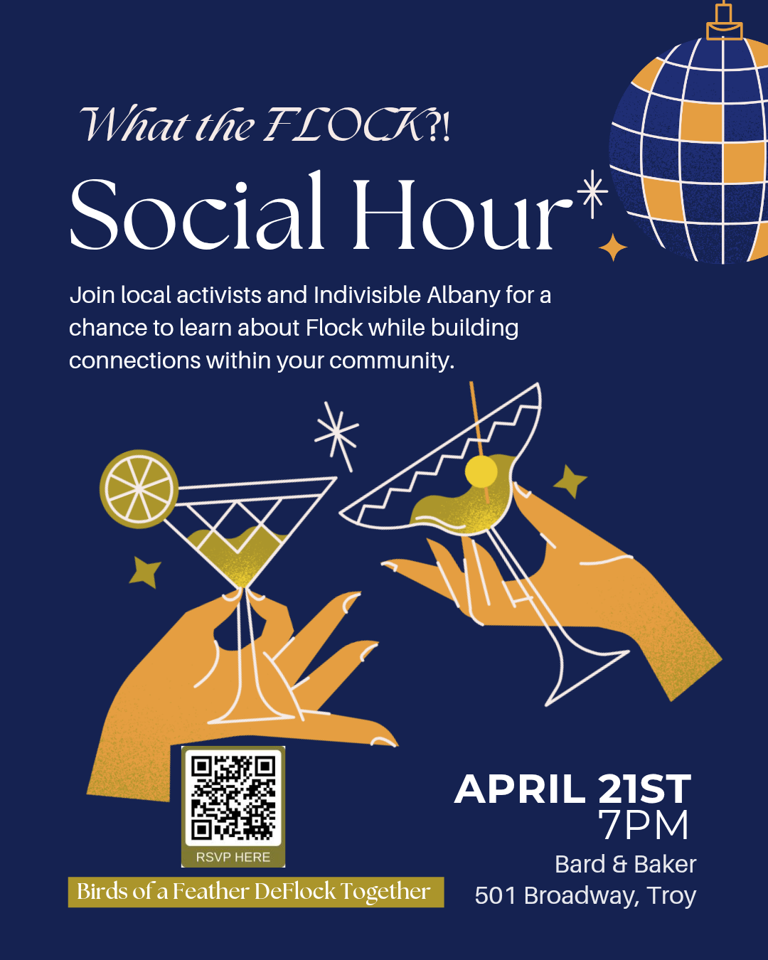 Join Troy Indivisible, De-Flock Troy, and Indivisible Albany for fun and games, and to learn about Flock surveillance systems. Come and sip, play and connect with others in your community.