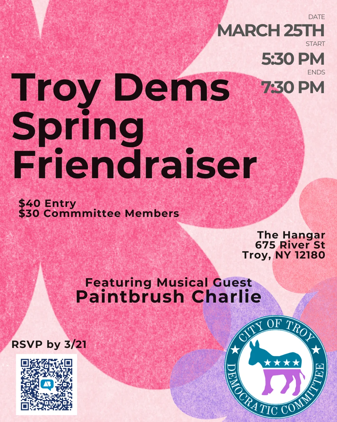 Join the Troy Democrats for their Spring Friendraiser and let's kick off Spring with good vibes, great people, and real community power!