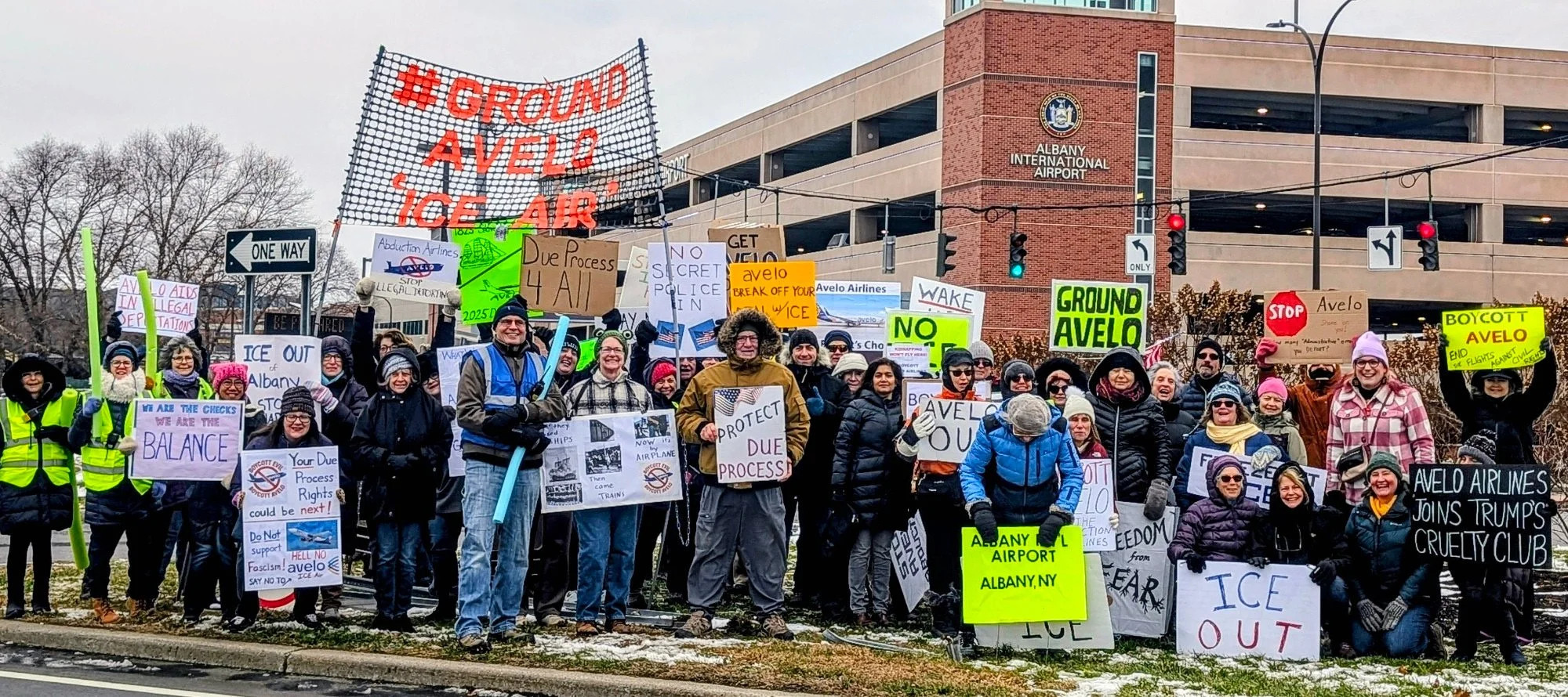 We are bringing you an abbreviated Weekly Update this week in light of the Holiday but, as is often the case, we’re starting off with Avelo Airlines: The Bargain-Basement Air Carrier That Tears Families Apart. Dozens of Capital Region residents braved the cold wind and showed up early on Sunday morning at Albany International Airport to do what we’ve been doing for seven months now; to shine a spotlight on Avelo and its collusion with ICE in the deprivation of human rights, and to call upon our local officials to take action to help remove Avelo from our community.