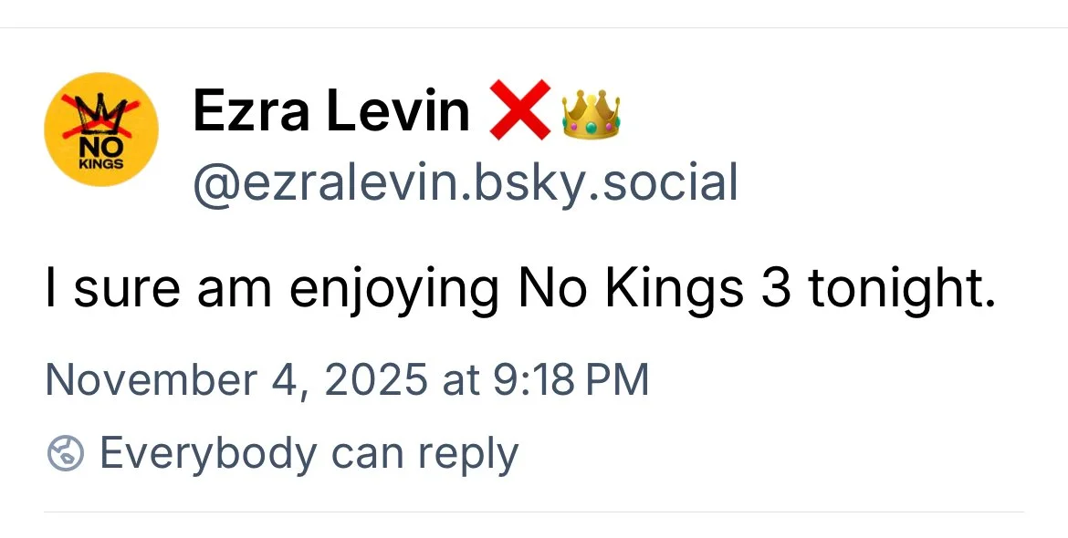 We therefore have reason to revel and an excuse to exult, especially coming as the election did only a couple of weeks after the jubilation and solidarity of No Kings 2. It’s as if the long unstoppable fog of DOGE and Elon and Vance and Miller and ICE and Noem and Kash and Vought and Bondi and Homan has finally lifted just a little. That’s an itch called hope getting scratched just a little bit. But, as the writer and independent journalist Marisa Kabas recently reminded us, it is difficult for that hope to turn into unbridled joy given the unmitigated horrors which we have been subjected to over the past 10+ months. As Kabas put it: